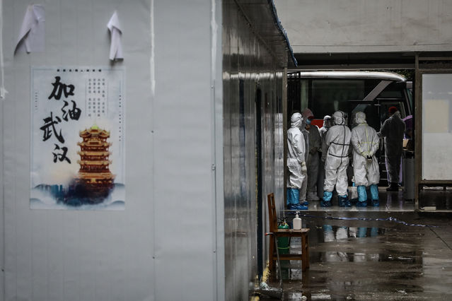 3月27日,武漢軟件工程職業學院康復驛站,等待離開的康復隔離觀察者。當日,最后一批共102名康復隔離人員結束了隔離觀察,在雨中登上汽車離開。至此,武漢軟件工程職業學院康復驛站正式完成歷史使命,在對相關區域進行專業消殺之后,將恢復原有功能。中青報·中青網記者 趙迪/攝