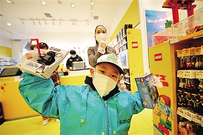 3月30日,武漢市楚河漢街重新開街,多家主力商鋪率先營業。圖為一位小朋友在家長的帶領下購買心儀的玩具。光明日報武漢一線報道組記者蔡闖、季春紅攝/光明圖片