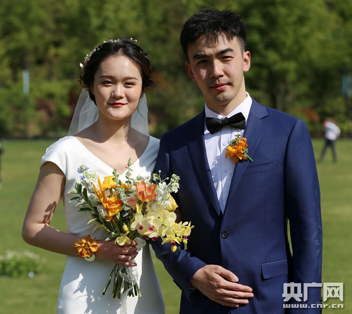 婚禮會延期,但愛不會遲到。4月25日,“2020莫干山大型戶外公益集體婚禮”在浙江舉行,40多對因新冠肺炎疫情影響而耽擱婚期的新人喜結連理。徐越宇和倪可靜就是其中的一對。“經歷疫情之后,我發現她很堅強,雖然耽誤了婚禮,但我們的心卻走得更近。”新郎徐越宇頗有感觸地說。