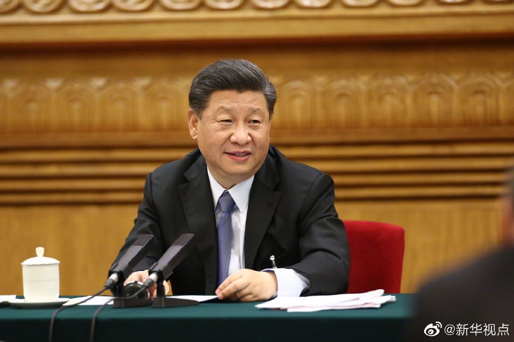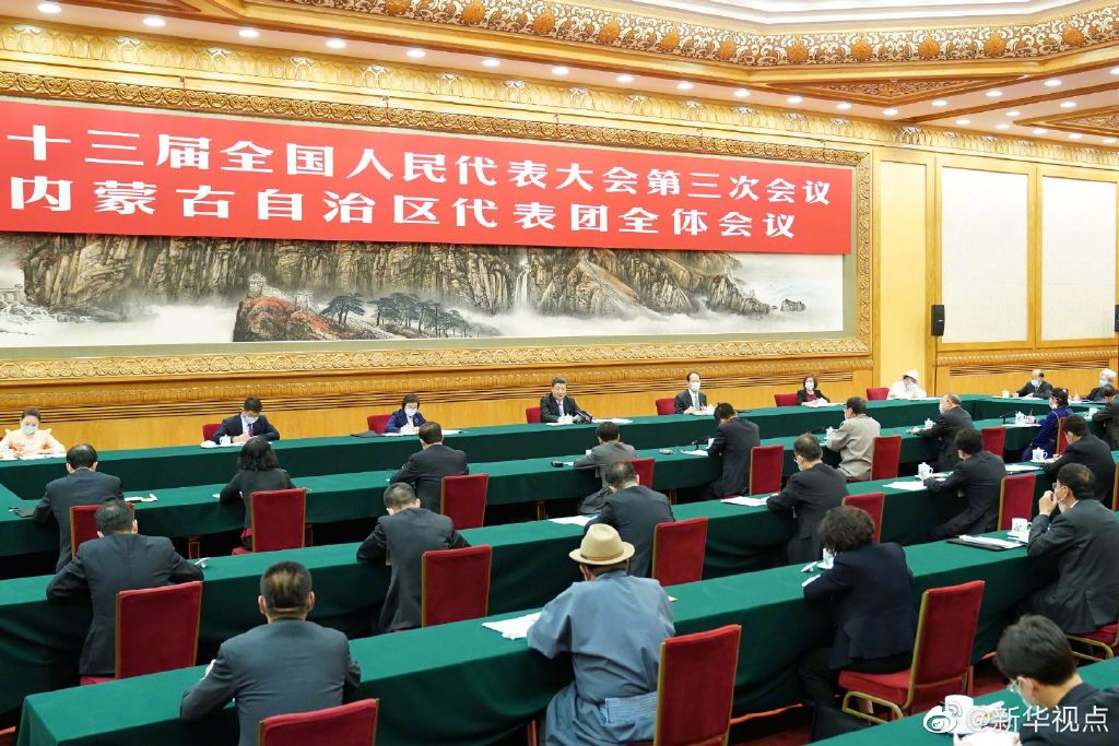 22日下午,中共中央總書記、國家主席、中央軍委主席習近平參加他所在的十三屆全國人大三次會議內蒙古代表團審議。 ????