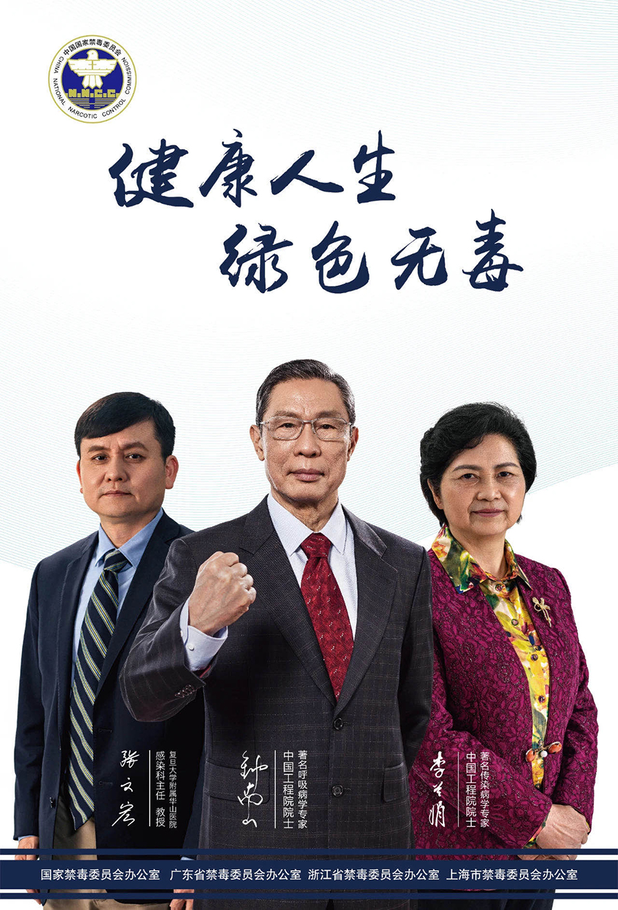 2020年6月26日第33個國際禁毒日即將到來。為在全社會進一步普及毒品預防知識,提高廣大人民群眾識毒拒毒防毒意識,國家禁毒委員會辦公室聯(lián)合廣東、浙江、上海省(市)禁毒辦邀請鐘南山、李蘭娟院士和復旦大學附屬華山醫(yī)院感染科主任張文宏傾情出鏡,制作了禁毒公益宣傳片《別讓“我以為”變成“我后悔”》及海報。三位權威專家醫(yī)者仁心,心系禁毒,從科學的角度深刻揭露毒品危害,向廣大人民群眾特別是青少年大力倡導“健康人生,綠色無毒”理念。讓我們攜起手來,珍愛生命,遠離毒品,積極參與禁毒斗爭,堅決打贏新時代禁毒人民戰(zhàn)爭。