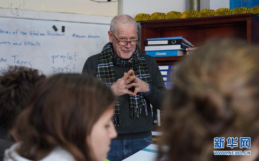 一名外籍老師在西寧市外籍人員子女學校內為孩子們上課(2019年11月4日攝)。新華社記者吳剛攝