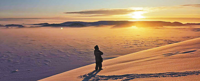 5月3日,隊(duì)員在內(nèi)拉灣海冰觀測(cè)途中看到正午的太陽。孫曉宇攝
