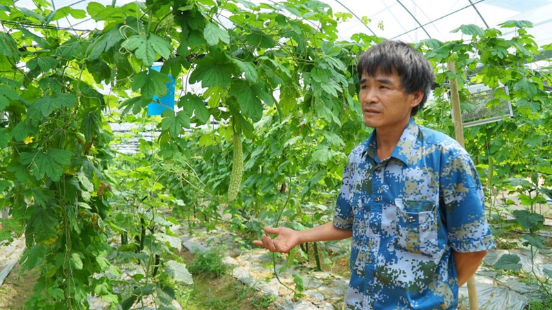 摘完黃瓜摘苦瓜,種完黃瓜種豆角,蔬菜一茬接一茬,收入一年勝一年。謝來龍去年8月開始承包村里蔬菜大棚,到年底光這個大棚就拿到了4萬多元收入,預計今年收入將超過10萬元,這是謝來龍曾經想都不敢想的事情。
