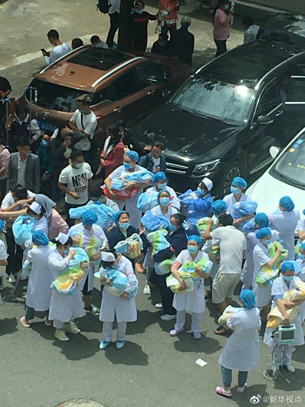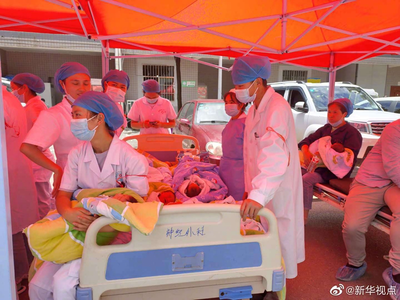 7月2日,貴州省畢節(jié)市赫章縣發(fā)生4.5級(jí)地震,震源深度13千米。地震襲來,當(dāng)不少人都往外疏散時(shí),正在開展業(yè)務(wù)學(xué)習(xí)的赫章縣人民醫(yī)院新生兒科醫(yī)生們第一時(shí)間“逆行”病房,緊隨而來的還有實(shí)習(xí)生、急診科護(hù)士等。他們每人負(fù)責(zé)一個(gè)寶寶,抱著往外疏散,確保當(dāng)時(shí)在病房的26個(gè)新生寶寶平安撤離到安全地帶。致敬白衣天使!(記者王新明、駱飛 圖片來源赫章縣人民醫(yī)院)
