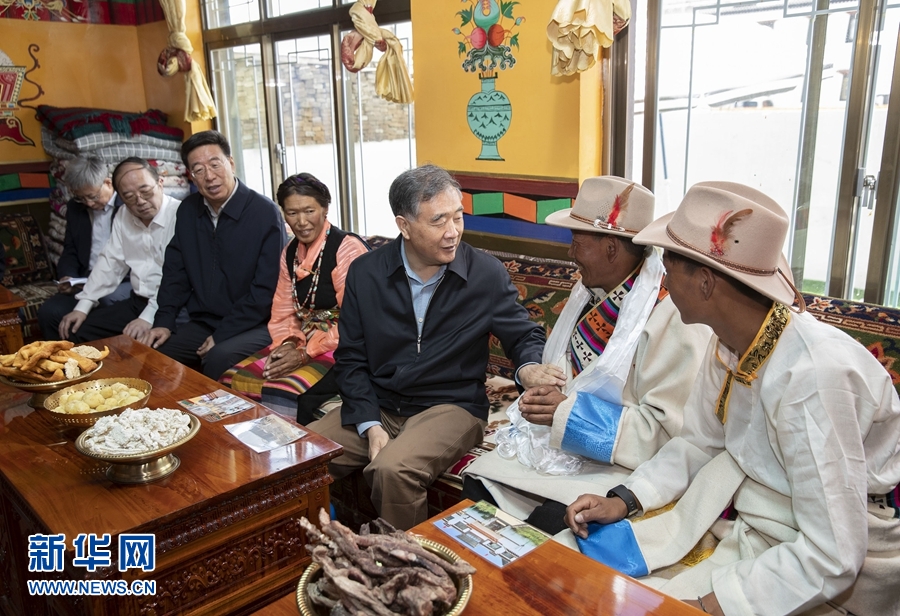 7月6日至8日,中共中央政治局常委、全國政協主席汪洋在西藏調研。這是7月6日,汪洋在日喀則桑珠孜區江當鄉郭加新村易地扶貧搬遷集中安置點藏族搬遷群眾家中看望。 新華社記者 黃敬文 攝