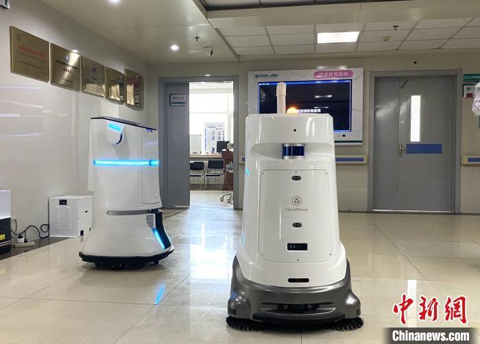 資料圖:銀川市第一人民醫院內,智能機器人正在工作?!畹?攝