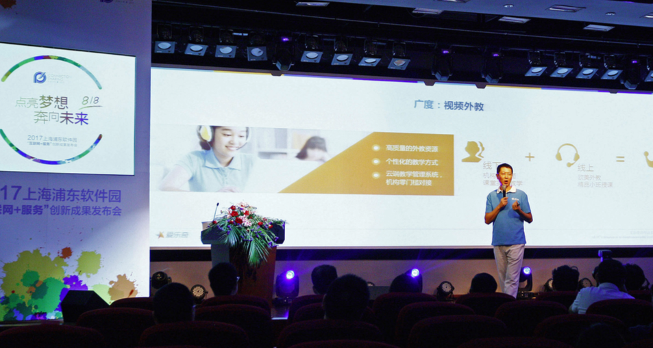 位于上海張江的浦東軟件園區科創企業工作人員在發布會現場介紹基于互聯網的遠程網絡教育系統(方喆/攝)