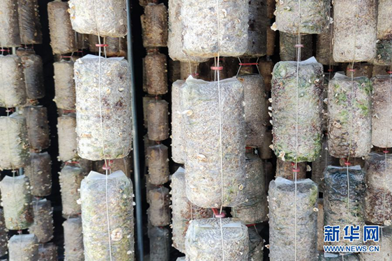 圖為楊莊村食用菌產(chǎn)業(yè)扶貧車間內(nèi)的玉木耳菌袋。新華網(wǎng)記者李志強 攝