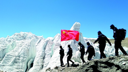“你在高山之巔,背靠著信念,自己也成了靠山。你在世界之巔,與冰雪為伴,時空也有了溫暖。愛國使命,融進(jìn)你的血脈,刻成了信念,也托起了藍(lán)藍(lán)的天。”(劉小草)