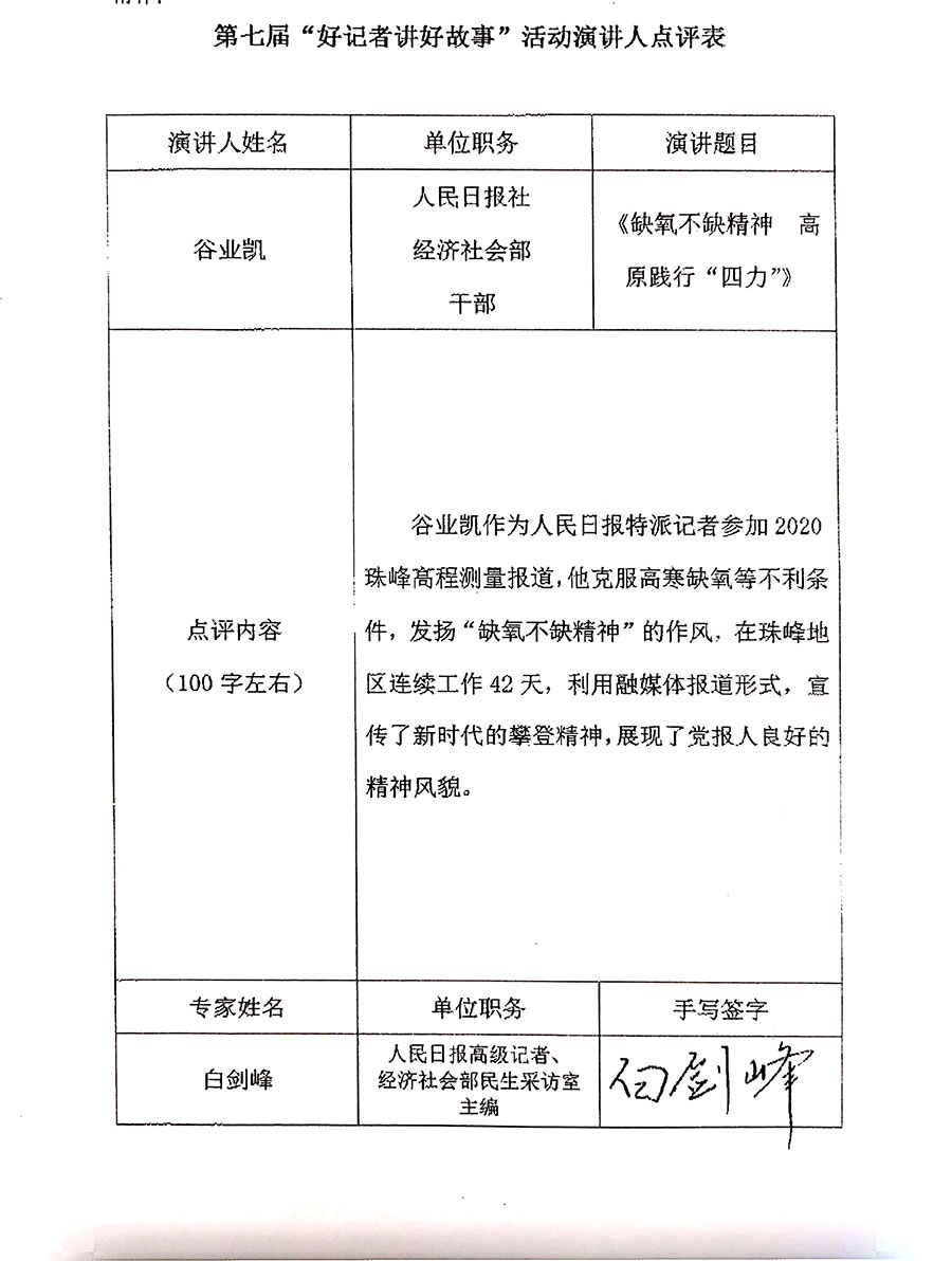人民日報(bào)谷業(yè)凱:缺氧不缺精神 高原踐行“四力”