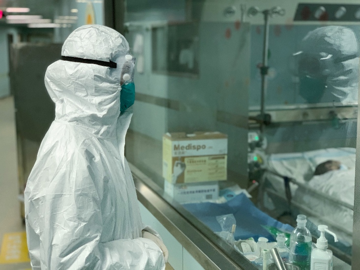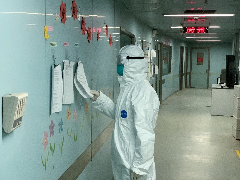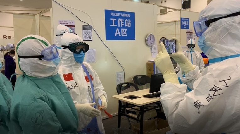 2月26日凌晨,人民日報記者吳姍在武漢市金銀潭醫院ICU重癥病區采訪。