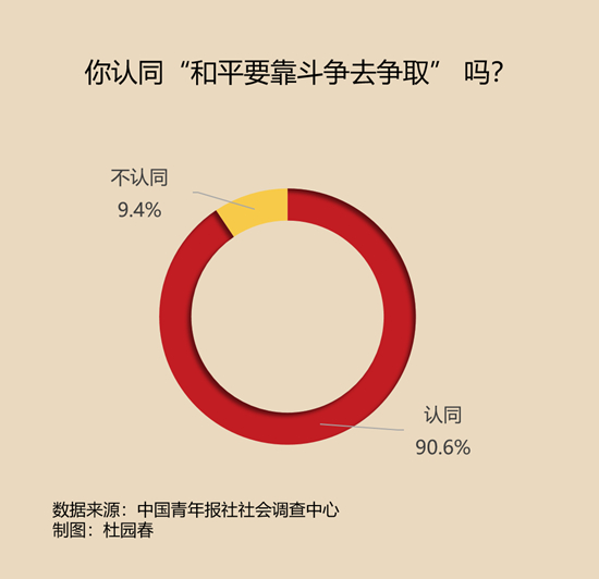 調查中,有90.6%的受訪者認同“和平要靠斗爭去爭取”這句話。