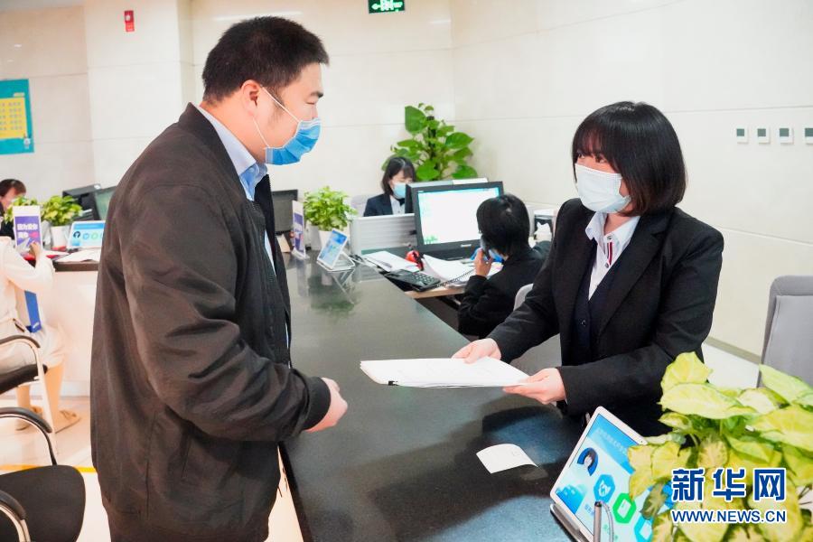 11月12日,在北京經濟技術開發區政務服務中心,工作人員(右)為企業人員辦理相關事項。新華社發