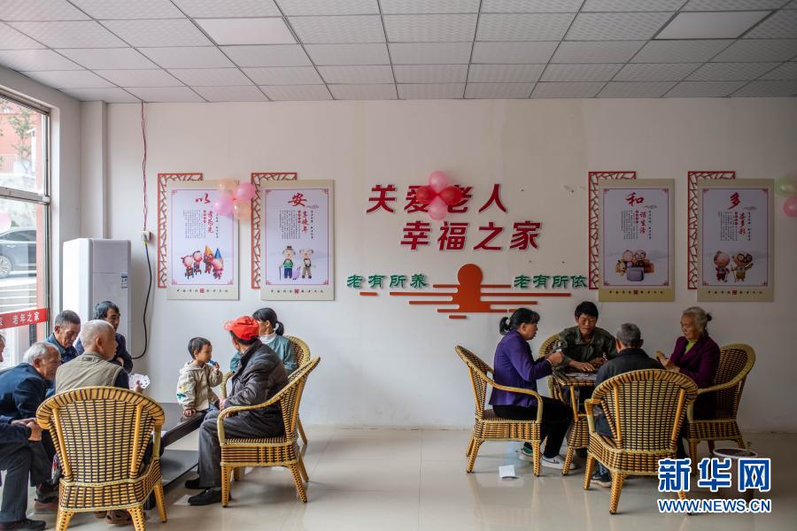 9月24日,在鎮雄縣大地易地扶貧搬遷安置點,老人們在老年之家休閑娛樂。新華社記者 胡超 攝