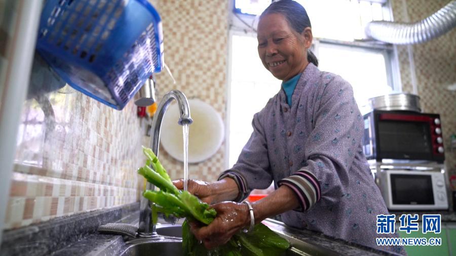 廣西隆安縣實施跨區(qū)域集中連片供水工程后,愛華村龍微屯的村民在家中用上了自來水(11月12日攝)。新華社記者 楊馳 攝