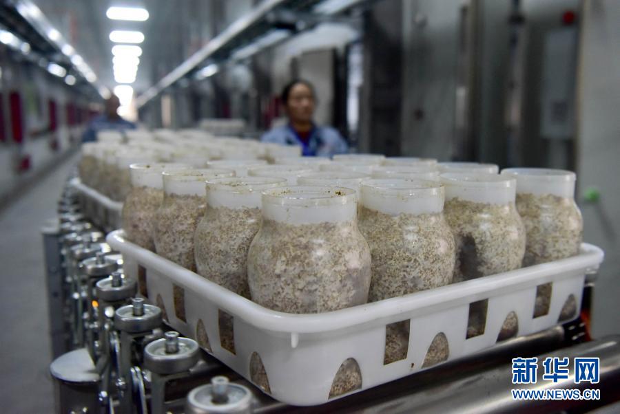 這是河南省駐馬店市泌陽(yáng)縣鮮菇坊生物科技有限公司食用菌培養(yǎng)車(chē)間一角(10月29日攝)。