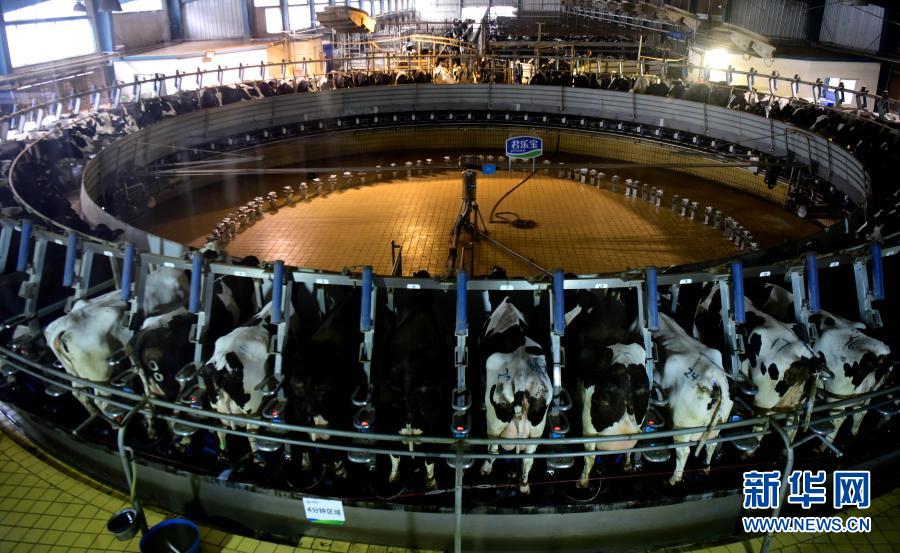 這是河南省駐馬店市正陽(yáng)現(xiàn)代化牧場(chǎng)擠奶車(chē)間一角(10月27日攝)。