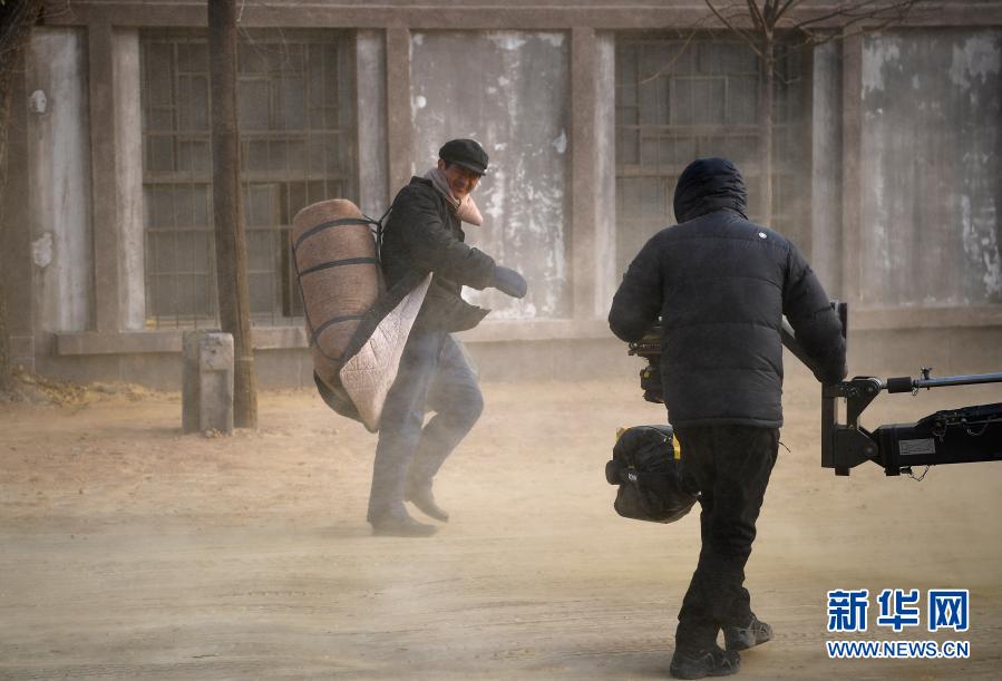 11月25日,焦裕祿扮演者郭曉東(左)在片場拍攝。新華社記者 王鵬 攝