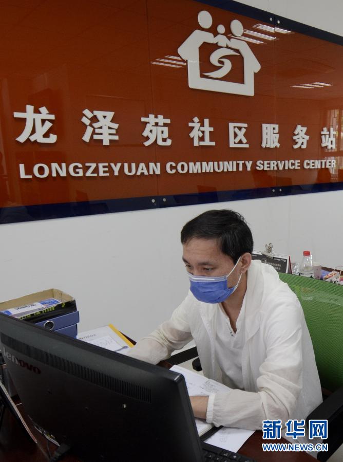 社區工作人員在回龍觀龍澤苑社區服務站工作(8月11日攝)。新華社記者 李欣 攝