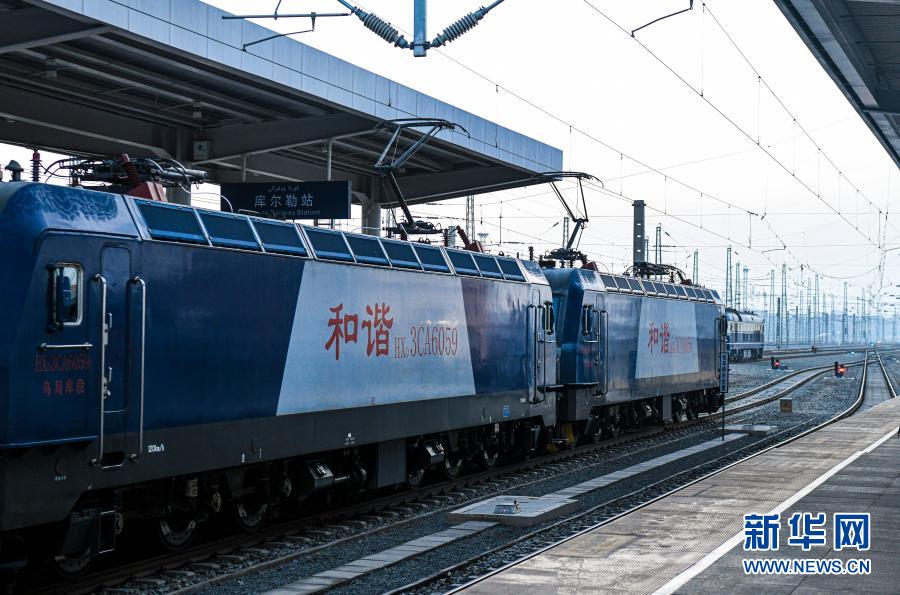 12月9日,在新疆庫爾勒站,32812次貨運列車準備發車。新華社記者 王菲 攝