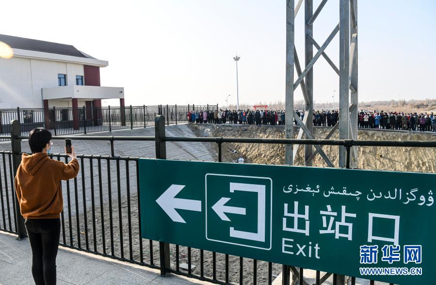 12月9日,在位于新疆尉犁縣境內的庫爾木依站,當地居民自發地來到車站外圍觀列車。新華社記者 王菲 攝