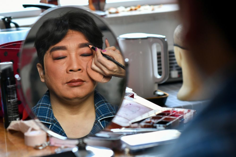 在各個舞臺間轉場的間隙,武凌云帶著戲劇妝容,向記者講述了一年來的生活。