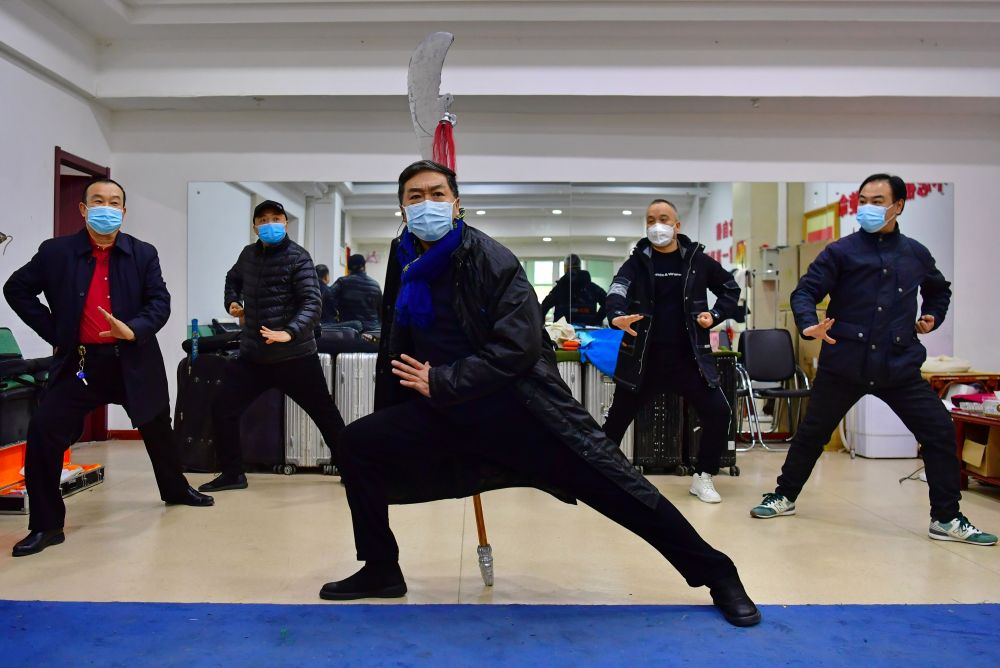 武凌云(中)在太原市晉劇藝術研究院排練晉劇(3月9日攝)。
