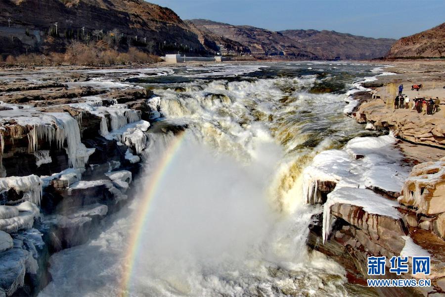 12月26日拍攝的黃河壺口瀑布(無(wú)人機(jī)照片)。新華社記者 劉詩(shī)平 攝