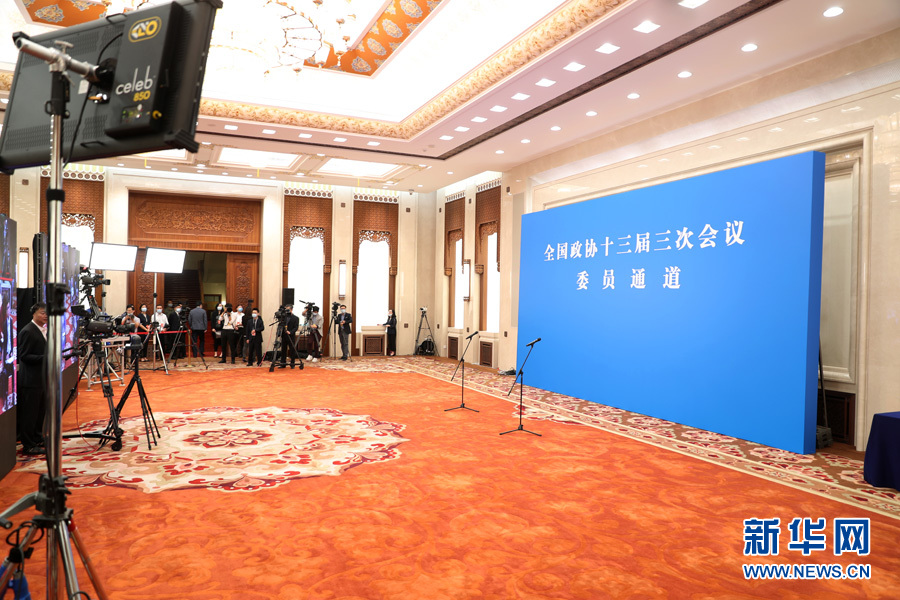 ??? 全國(guó)政協(xié)十三屆三次會(huì)議首場(chǎng)“委員通道”采訪活動(dòng)于5月21日在人民大會(huì)堂新聞發(fā)布廳舉行,邀請(qǐng)部分全國(guó)政協(xié)委員通過網(wǎng)絡(luò)視頻方式接受媒體采訪。圖為“委員通道”現(xiàn)場(chǎng)。新華網(wǎng) 王翰林 攝