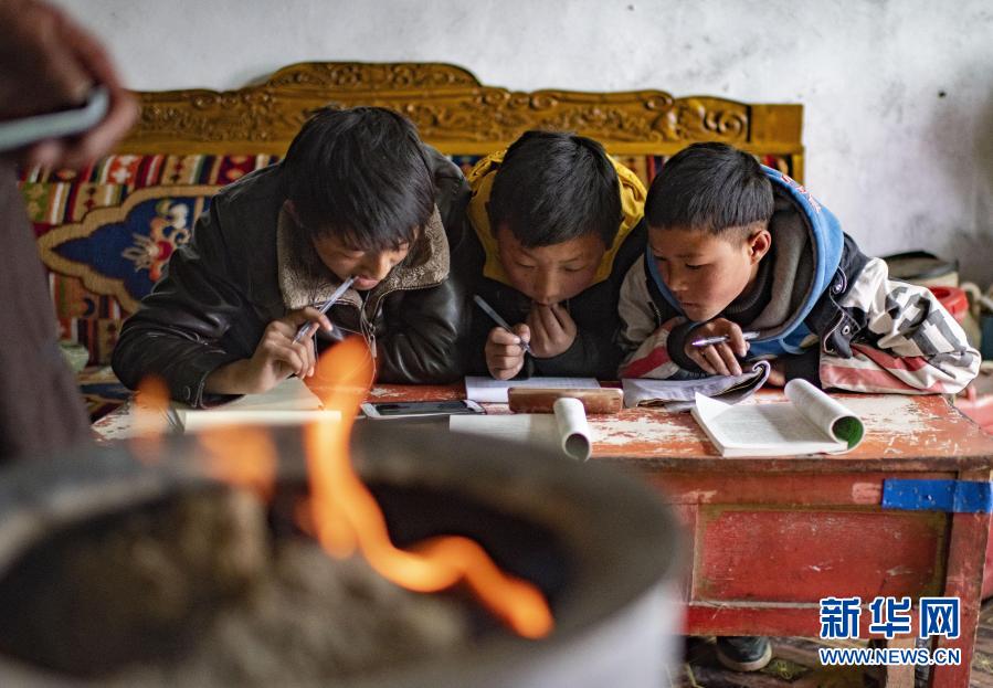 2020年3月6日,西藏當(dāng)雄縣烏瑪塘鄉(xiāng)巴嘎村的孩子在上網(wǎng)課。