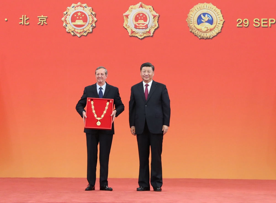 (圖為2019年9月29日,習(xí)近平向古共中央第一書記勞爾·卡斯特羅頒授“友誼勛章”,時任古巴駐華大使拉米雷斯代領(lǐng)。新華社記者 王曄 攝)