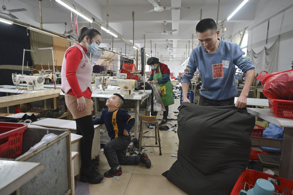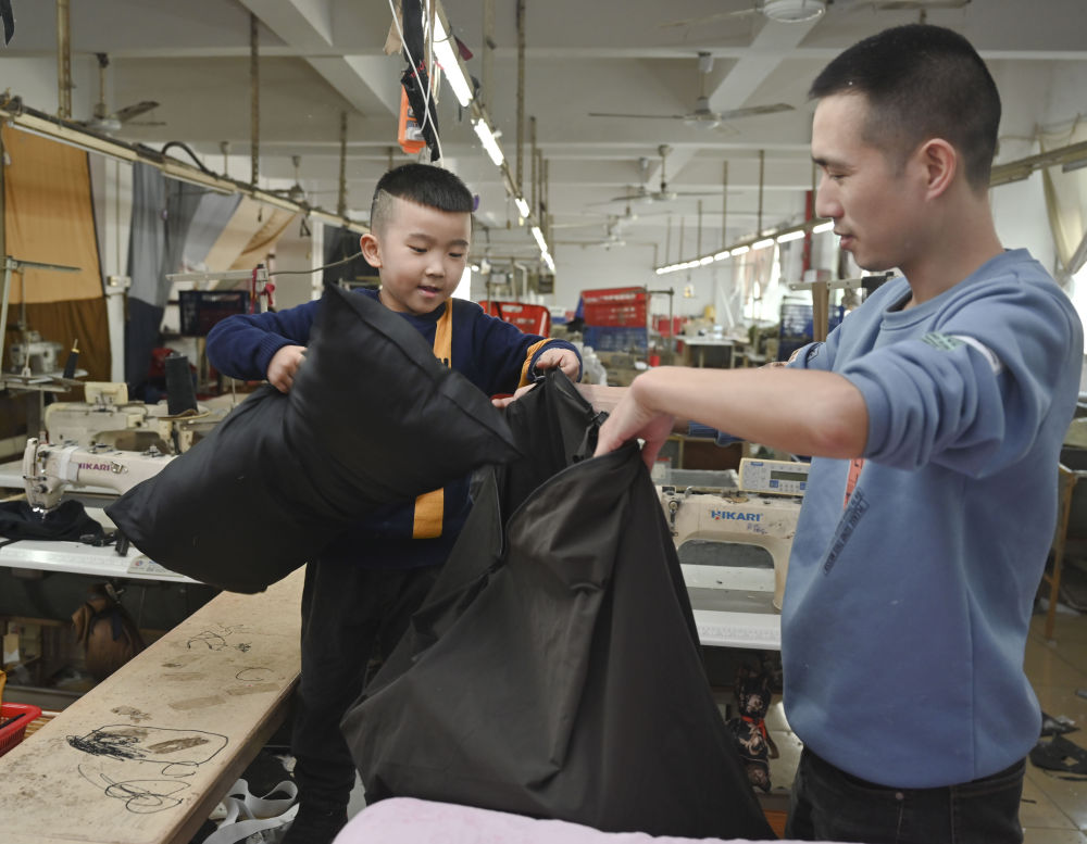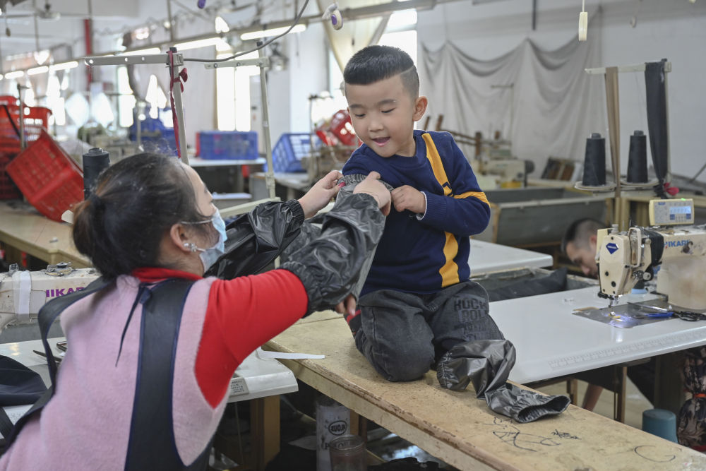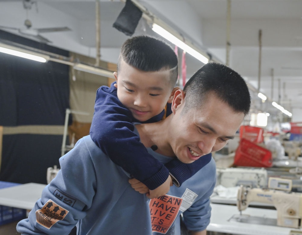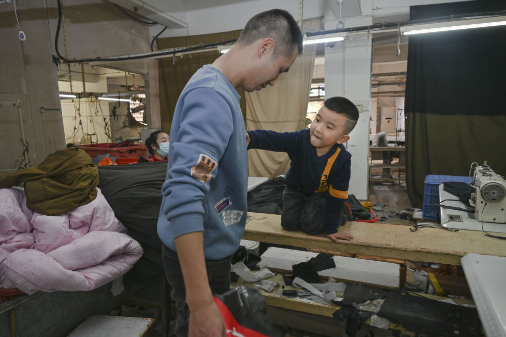 今年春節,黃海龍決定在福建就地過年,這讓5歲的小兒子聰聰高興不已。這是聰聰第一次在出生地和爸爸媽媽一起過年。盡管如此,黃海龍還是割舍不下遠在四川老家的親人,特地為他們做了羽絨服、袖套、枕頭、圍裙等寄回去。