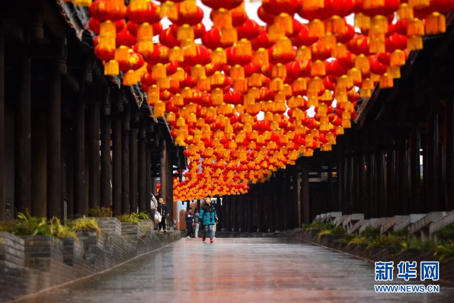 重慶市酉陽土家族苗族自治縣酉州古城街道上掛起了紅燈籠(2月10日攝)。新華社發(fā)(陳碧生 攝)