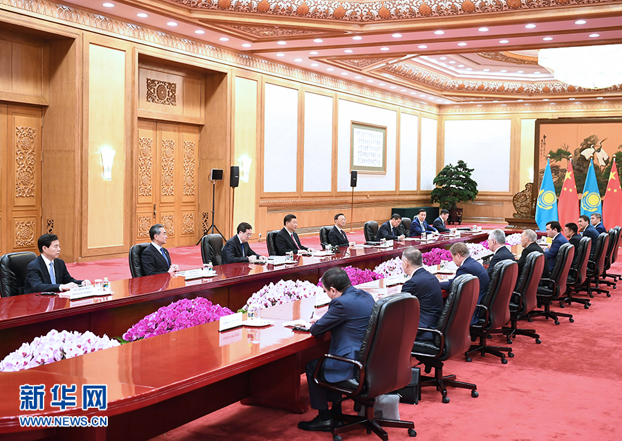 4月28日,國家主席習近平在北京人民大會堂會見哈薩克斯坦首任總統納扎爾巴耶夫。 新華社記者 李學仁 攝