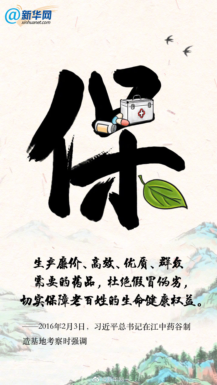 2016年2月3日,習近平總書記在江中藥谷制造基地考察時強調,醫療保健是全面建成小康社會的重要方面,要下大氣力抓好,生產廉價、高效、優質、群眾需要的藥品,杜絕假冒偽劣,切實保障老百姓的生命健康權益。