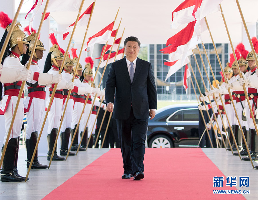 當地時間11月13日,國家主席習近平在巴西利亞同巴西總統博索納羅會談。這是習近平抵達會談現場。 新華社記者 王曄 攝