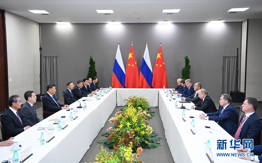 當(dāng)?shù)貢r(shí)間11月13日,國(guó)家主席習(xí)近平在巴西利亞會(huì)見俄羅斯總統(tǒng)普京。新華社記者 龐興雷 攝