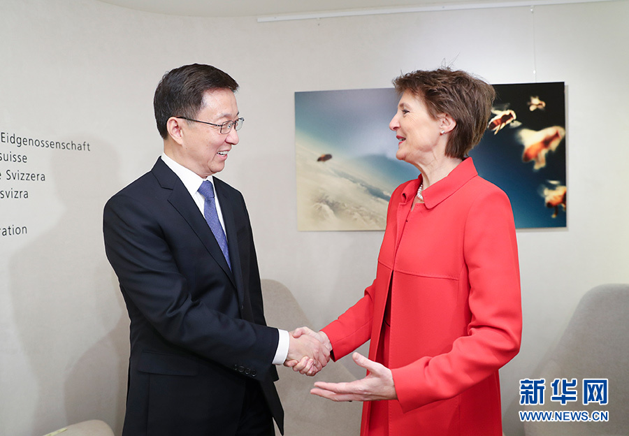 1月20日至21日,應(yīng)瑞士聯(lián)邦副主席帕姆蘭邀請(qǐng),中共中央政治局常委、國(guó)務(wù)院副總理韓正訪問瑞士。這是1月21日,韓正會(huì)見瑞士聯(lián)邦主席索馬魯加。 新華社記者 丁海濤 攝