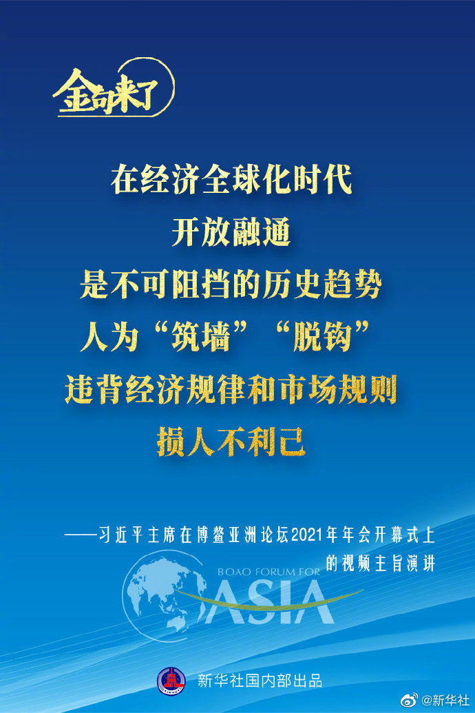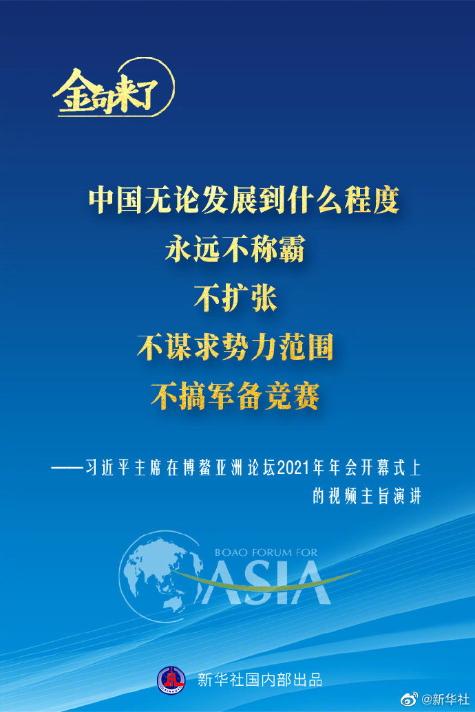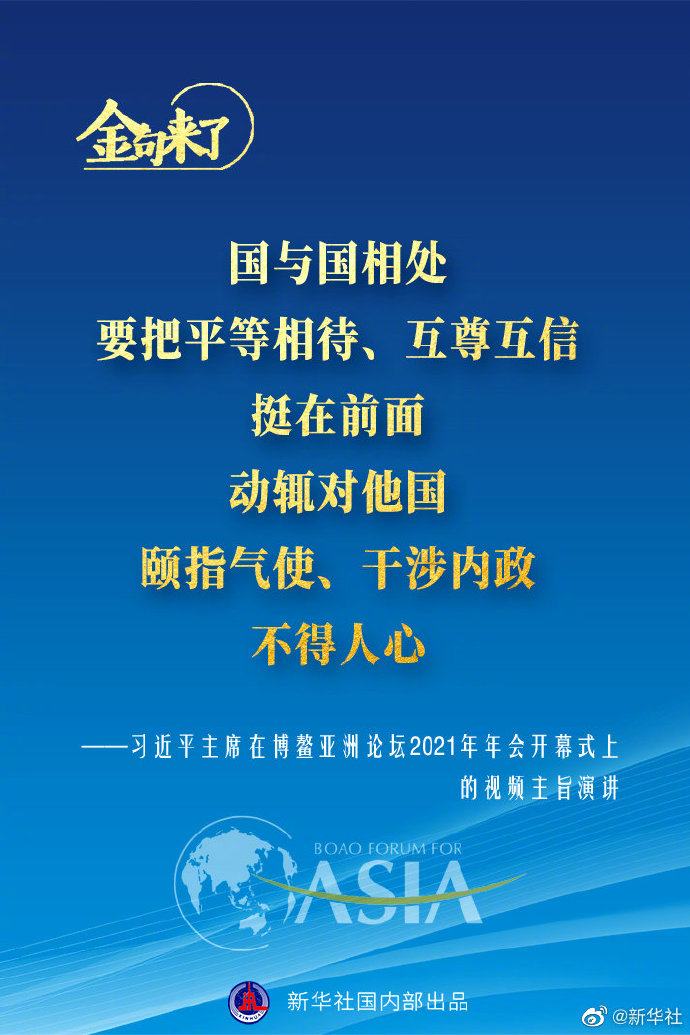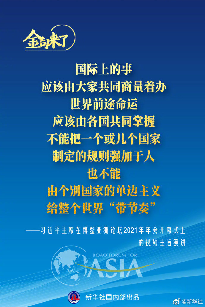 4月20日,習近平主席在博鰲亞洲論壇2021年年會開幕式上以視頻方式發表主旨演講。一起來看演講金句!?