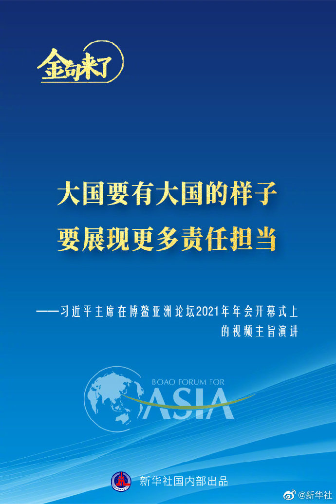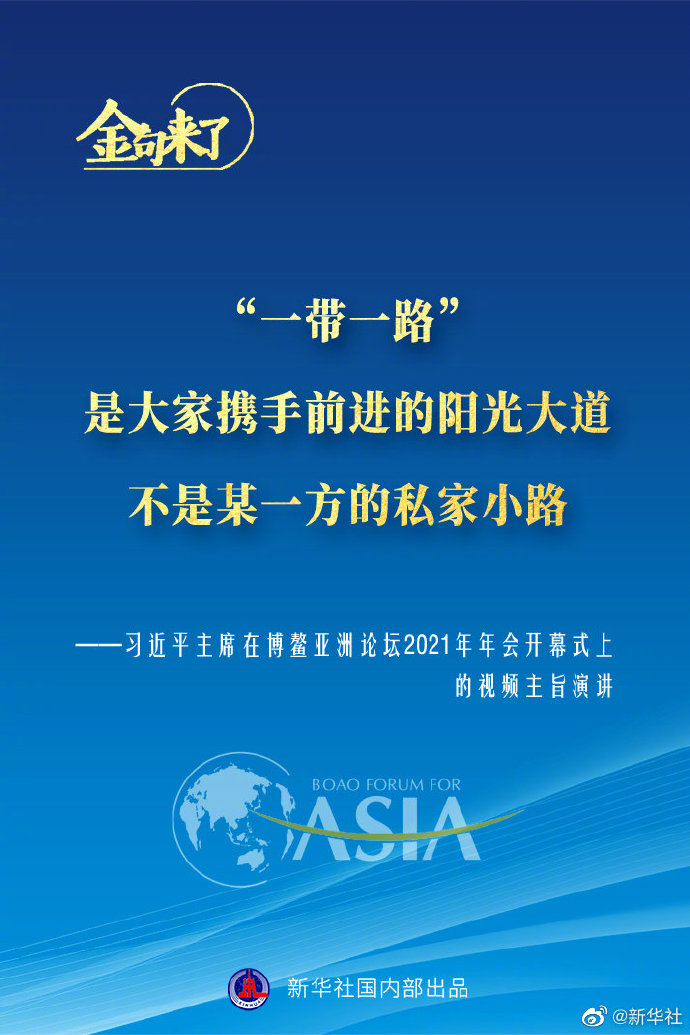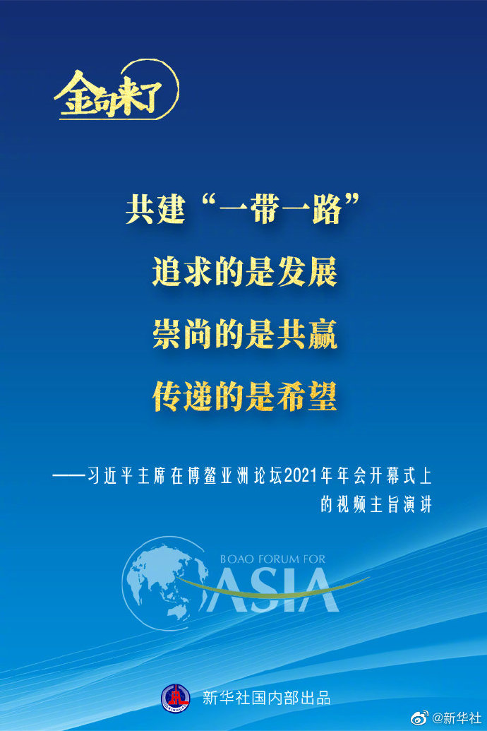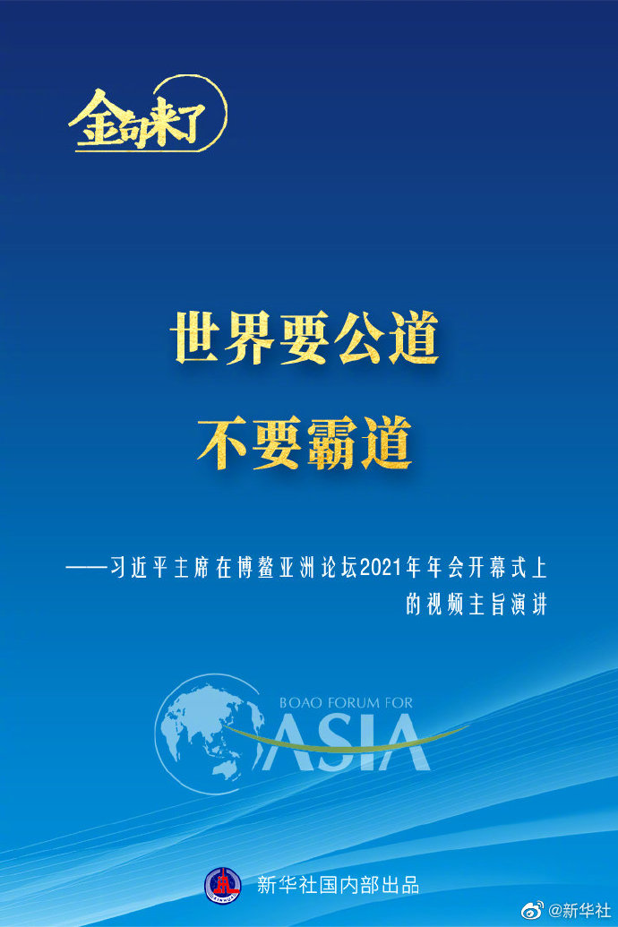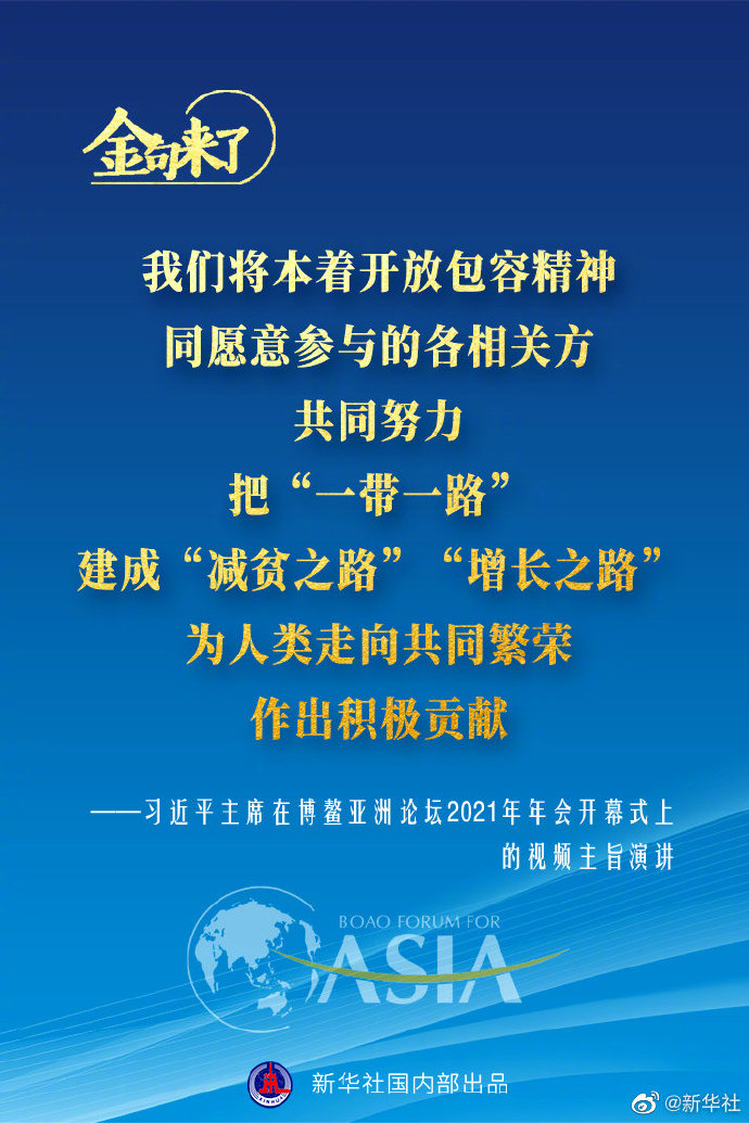 海報:習近平在博鰲亞洲論壇2021年年會開幕式上發表主旨演講 新華社記者 鞠鵬 孟麗靜 編制
