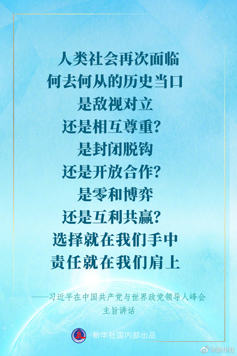 習近平在中國共產黨與世界政黨領導人峰會上的講話金句來了!