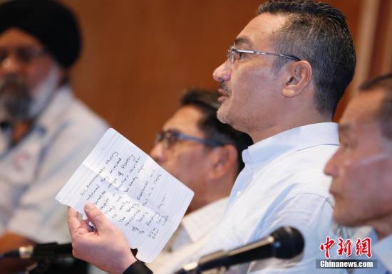 3月22日,馬來西亞官方在吉隆坡召開的新聞發(fā)布會即將結(jié)束之時,馬代理交通部長希沙姆丁·侯賽因突然拿出一個字條對在場記者說:“我剛從中國駐馬來西亞大使館得到消息,中方衛(wèi)星在南印度洋海域發(fā)現(xiàn)了一個大型漂浮物,可能與失聯(lián)的MH370航班有關?!敝行律绨l(fā) 劉關關 攝