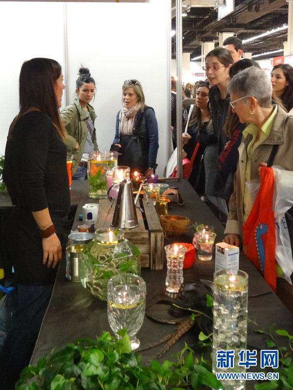????4月26日,巴塞羅那第一屆“手工藝品節”(Handmade Festival Barcelona)上,一些參展者向游客介紹如何進行手工制作。