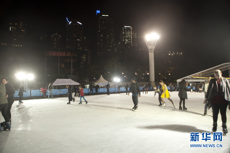 ????6月13日起,為期1個(gè)月的大型冬季冰雪活動(dòng)在悉尼市中心的情人港(Darling Harbour)為悉尼市民冬季的生活增添了些許名副其實(shí)的冬季氣氛。圖為悉尼情人港塔巴隆公園(Tunmbalong Park)上,巨大的戶外滑冰場(chǎng)吸引了成千上萬名市民前來體驗(yàn)。新華社記者 李冰 攝