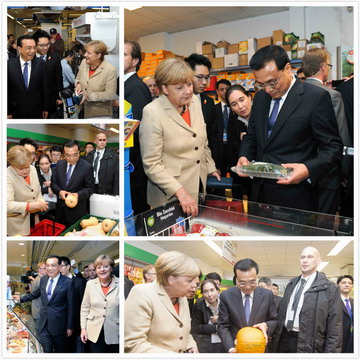 此外,默克爾總理還帶李總理光顧了柏林一家超市。默克爾向李總理推薦了一款可以寄給家人的明信片,并大方的買下,做為禮物送給李總理。看著李總理捧著德國(guó)的南瓜,小編真的忍不住要說(shuō),“真心沒(méi)咱的南瓜好吃啊!”