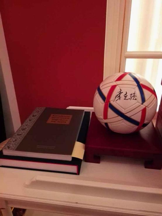 知道梅德韋杰夫喜歡踢球和攝影,克強總理專門為他準備了一份禮物:俄羅斯國旗白藍紅三色相間的足球,還有一本俄文版的《中國世界遺產畫冊》。小梅則把一幅自己家鄉圣彼得堡街景的油畫回贈給總理。