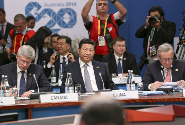 ????(2014年11月15日,國家主席習近平出席二十國集團領導人第九次峰會并發表重要講話。新華社發)