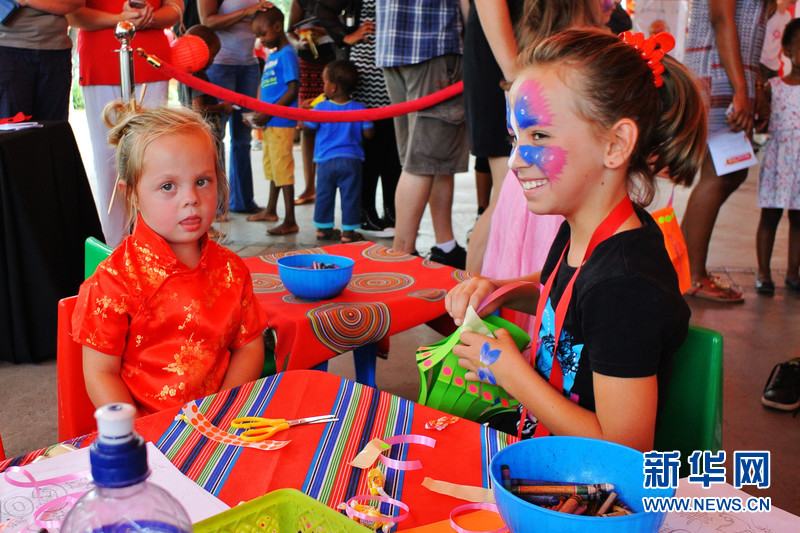南非小朋友體驗中國文化。新華社發(郭興華攝)