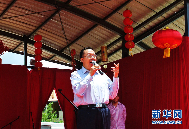 中國駐南非大使館田學軍大使致辭。新華社發(郭興華攝)